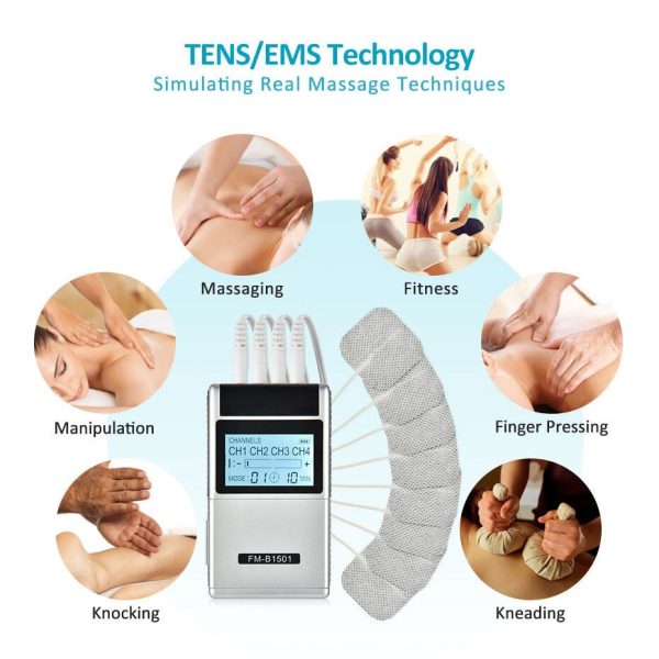15 Modes TENS Therapy Massager for Pain Relief – 4 Output Electric EMS Muscle Stimulator for Back, Neck, Foot, Leg