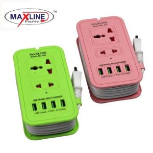 1৳ – 6৳ Price range: 1৳ through 6৳Maxline Universal Travel Fast Charging Multiplug With 4 USB Port and 5 Pin Socket and 6 Feet Long Cable- Multicolor