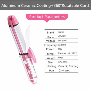 Be the first to review “Kemei Km-1291 Professional 3 In 1 Electric Multifunction Ceramic Coating Iron Wave Zig Zag Hair Curler and Straighter For Women” Cancel reply